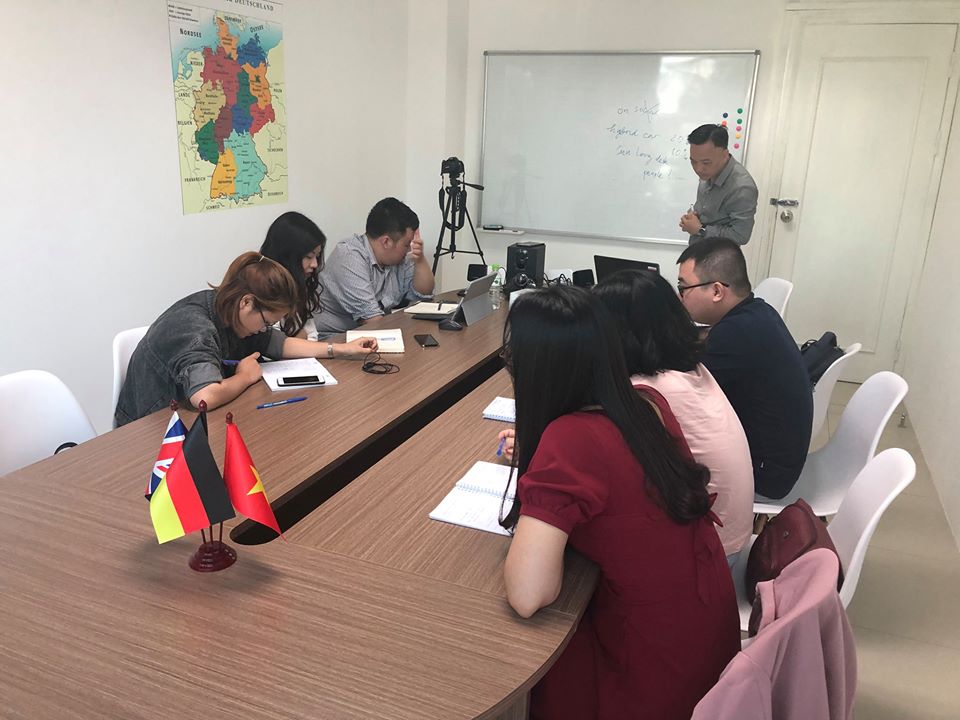 + Leipzig series: Khóa học phiên dịch tiếng Đức, cơ bản, kéo dài 3 tháng, gồm 20 buổi, 2 buổi một tuần, mỗi buổi 3 tiếng tại trung tâm đào tạo ở tầng 3, 141 Hoàng Hoa Thám (gần Lăng Bác). Phòng học khang trang, đầy đủ trang thiết bị hiện đại (máy chiếu LCD, máy quay...), có máy lạnh. Thày Hà đứng lớp.